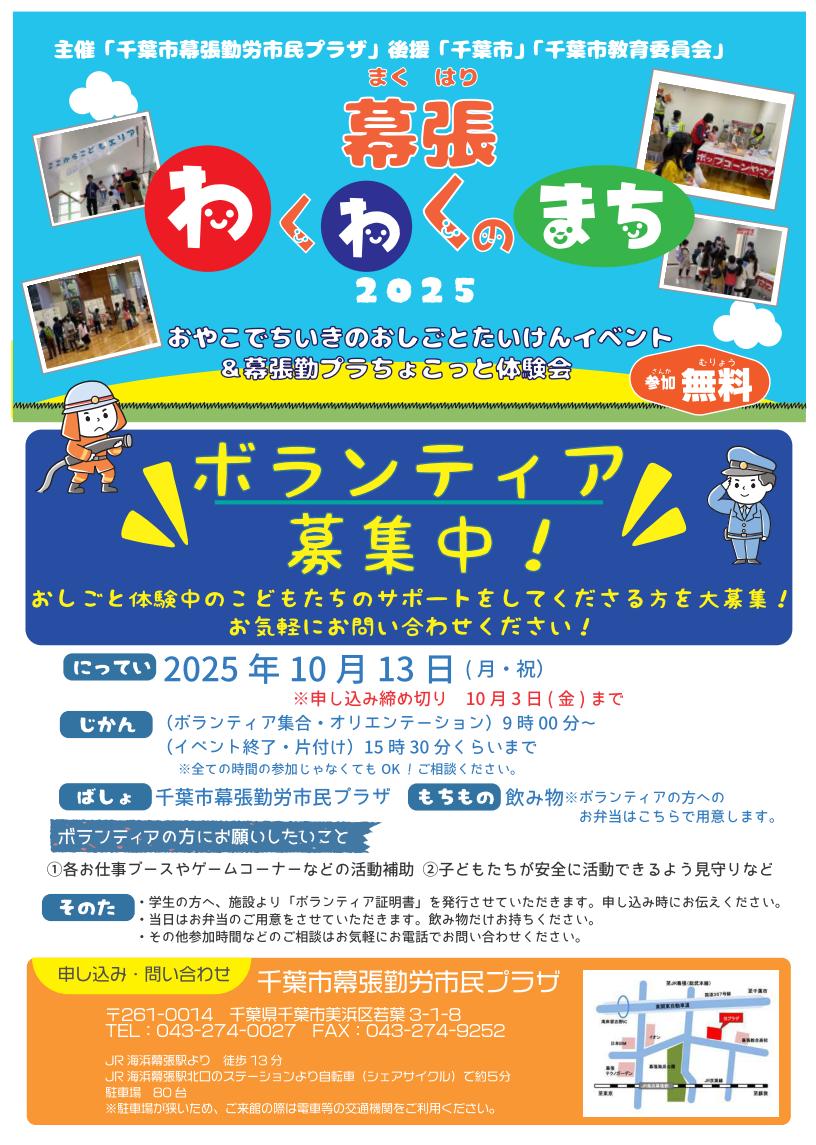 【ボランティア募集】おやこでおしごと体験「幕張わくわくのまち2025」