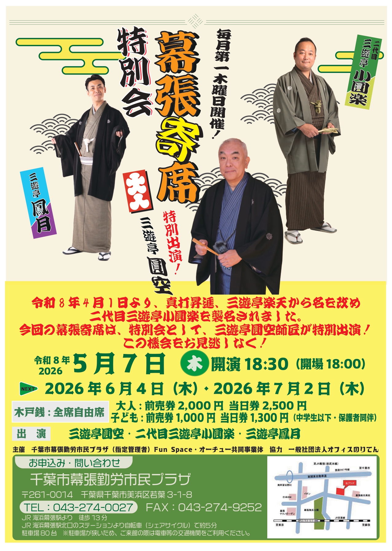 今回の幕張寄席は、特別会として、三遊亭圓空師匠が特別出演!