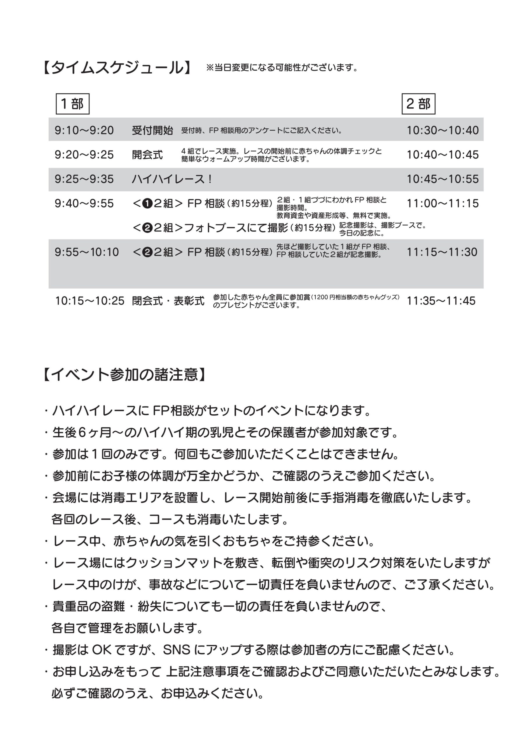 ・ハイハイレースに FP相談がセットのイベントになります。どちらか一方のみの参加はできません。