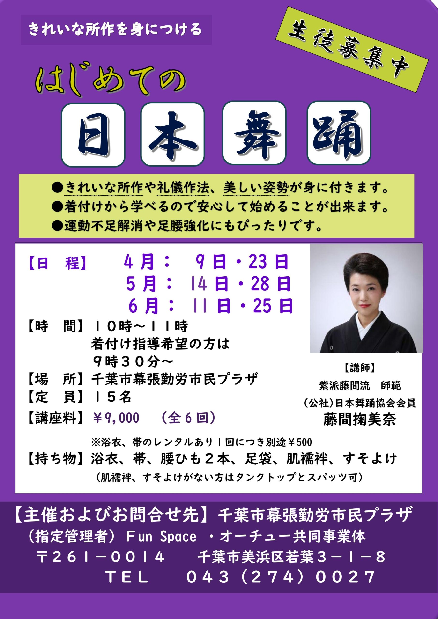 | 申し込み方法 | 幕張勤労市民プラザ窓口 ※回数割途中参加も可能です!見学も大歓迎。詳細はお問合せください。 |