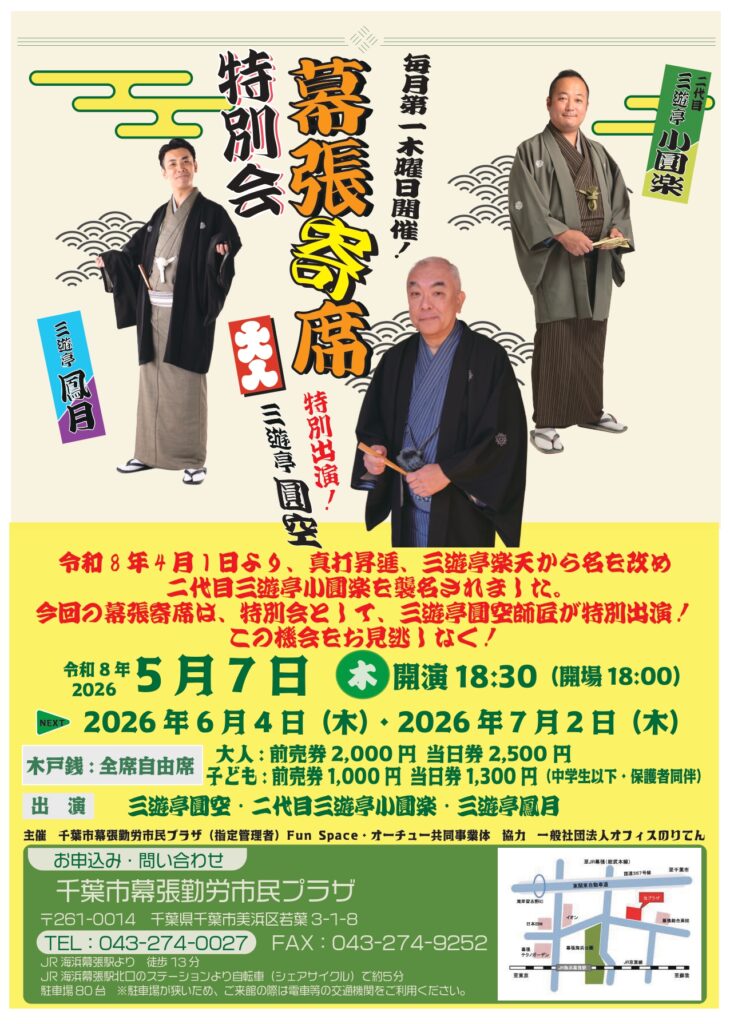 今回の幕張寄席は、特別会として、三遊亭圓空師匠が特別出演!