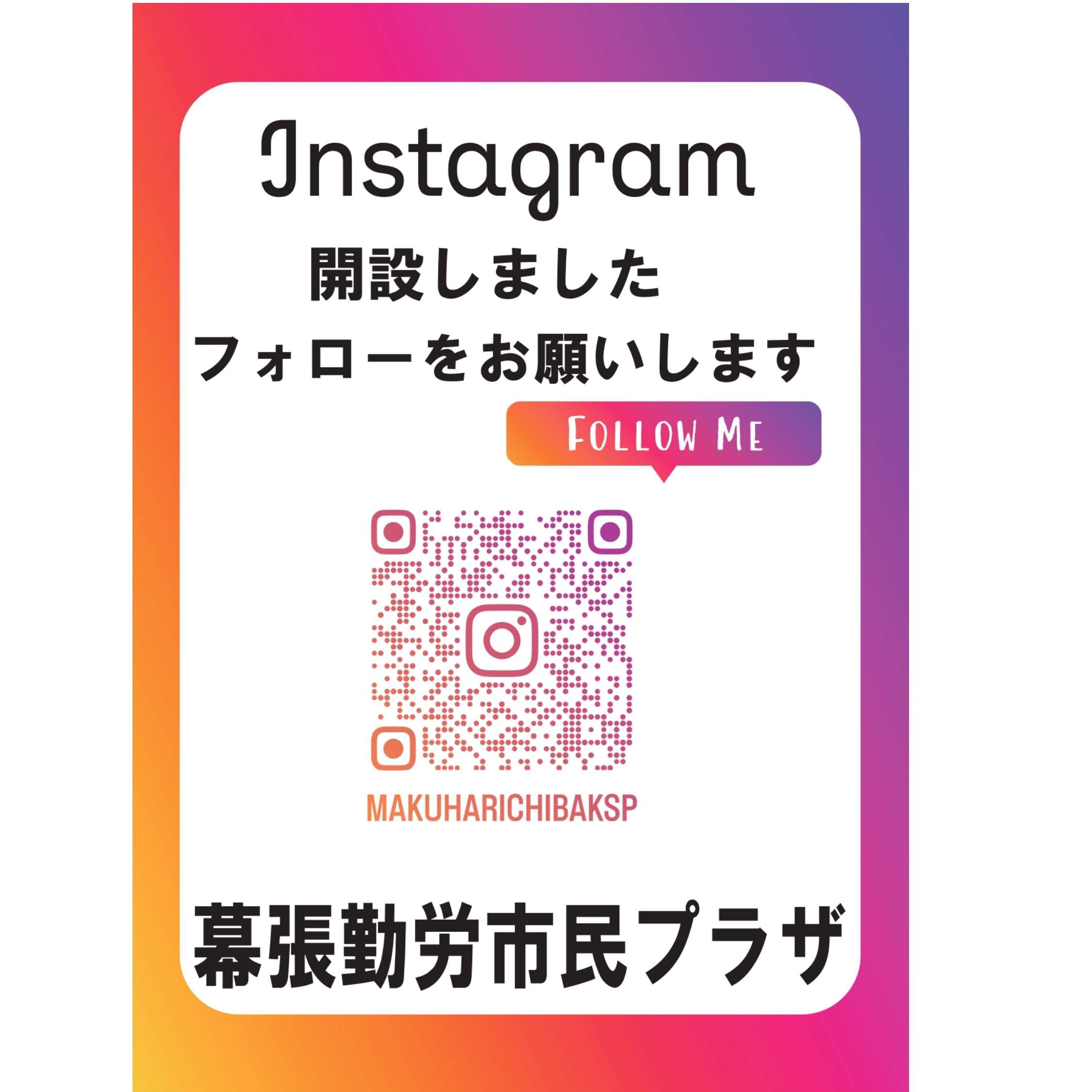 この度、幕張勤労市民プラザ公式Instagram開設致しました!